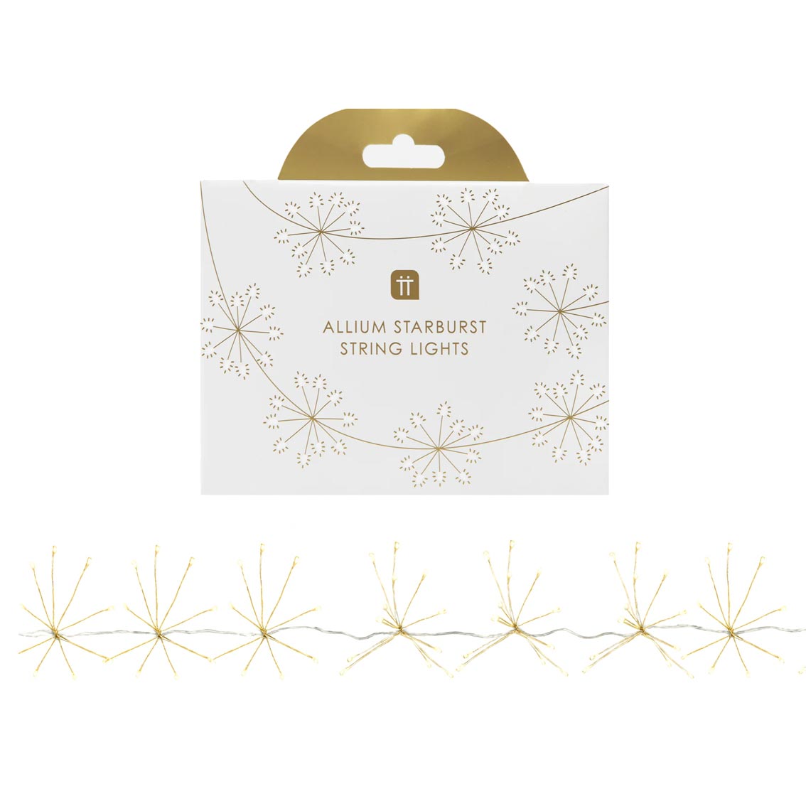 Turn any part of your home into a cosy winter wonderland with these starburst shaped LED lights. Inspired by the charming shape of the allium flower, unwrap these LED lights and arrange them as you like around a banister, bookshelf or mantlepiece. With a warm twinkling glow, these lights will add a sparkle to any part of your home this Christmas season.