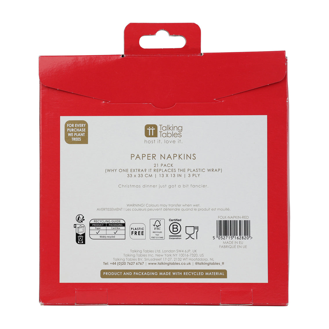 About Folk Red Christmas Paper Napkins - 20 Pack: