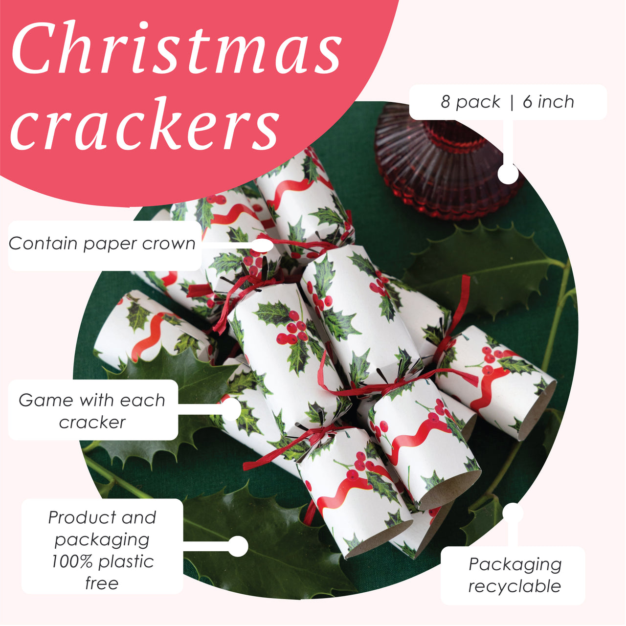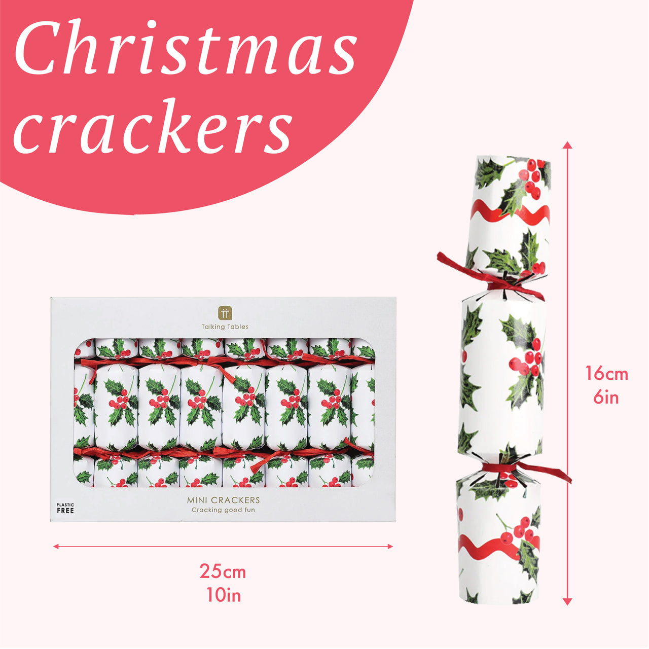 About this Holly White Mini Christmas Crackers - 8 Pack: