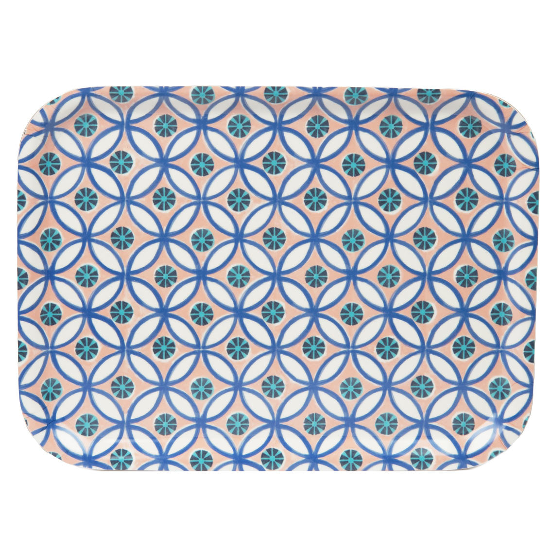 Our Souk Pink Wooden Tray is made in Sweden from sustainably sourced birch wood and is inspired by the plethora of pretty tiles found in Moroccan souks. The blue circles with green detailing intertwine to create a repeated pattern that chimes wonderfully with the pale pink background. Perfect for summer hosting, this durable tray will last through tea and bubbly spillages, as well as muck from potted plants.