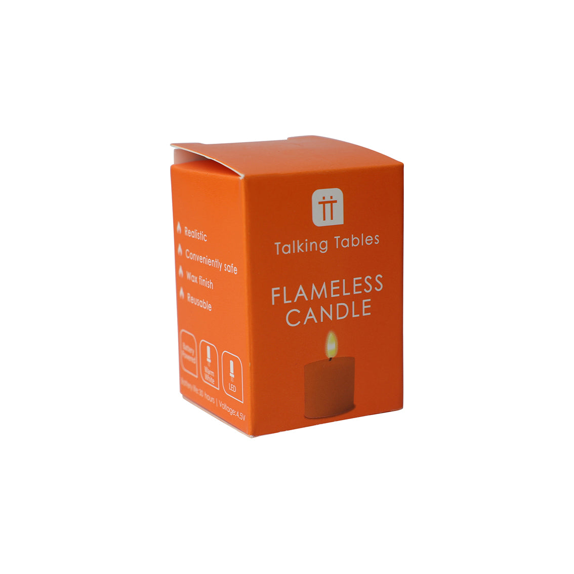 Bright, bold and perfectly safe, this Orange Flameless LED Tealight Candle is made from real wax with a flickering LED tip for a realistic glow. Battery-powered and reusable, it’s a fuss-free way to add atmosphere without smoke or mess. Ideal for Halloween styling, autumn tablescapes or simply creating a cosy glow at home all year round.