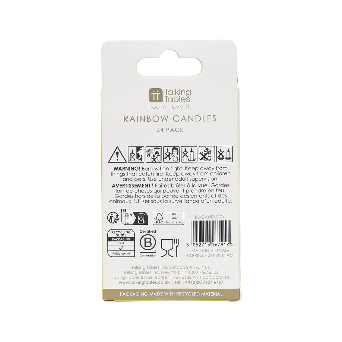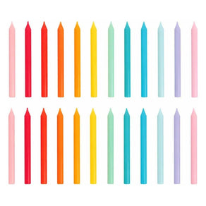 24 candles in solid rainbow colours for instant impact