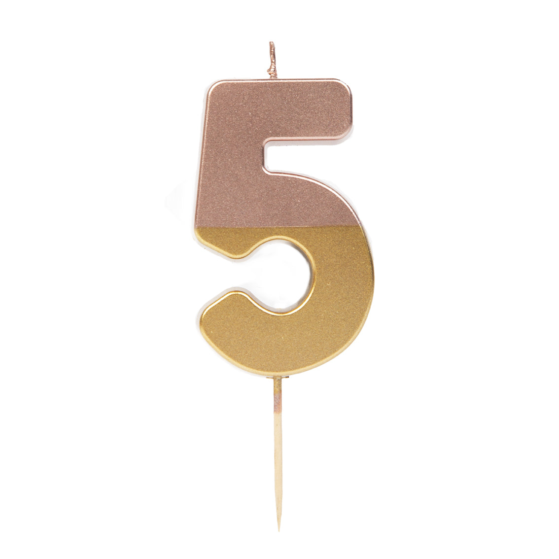 Why we love this 'Rose Gold Dipped Number Candle - 5’: