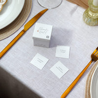 Keep guests entertained with this charming wedding games set. Designed with heart-shaped cards and elegant lettering, it includes fun ice-breaker activities like I Spy, Most Likely To, Shout Out! and Trivia. A thoughtful addition to your tables, it brings laughter and conversation to your big day.