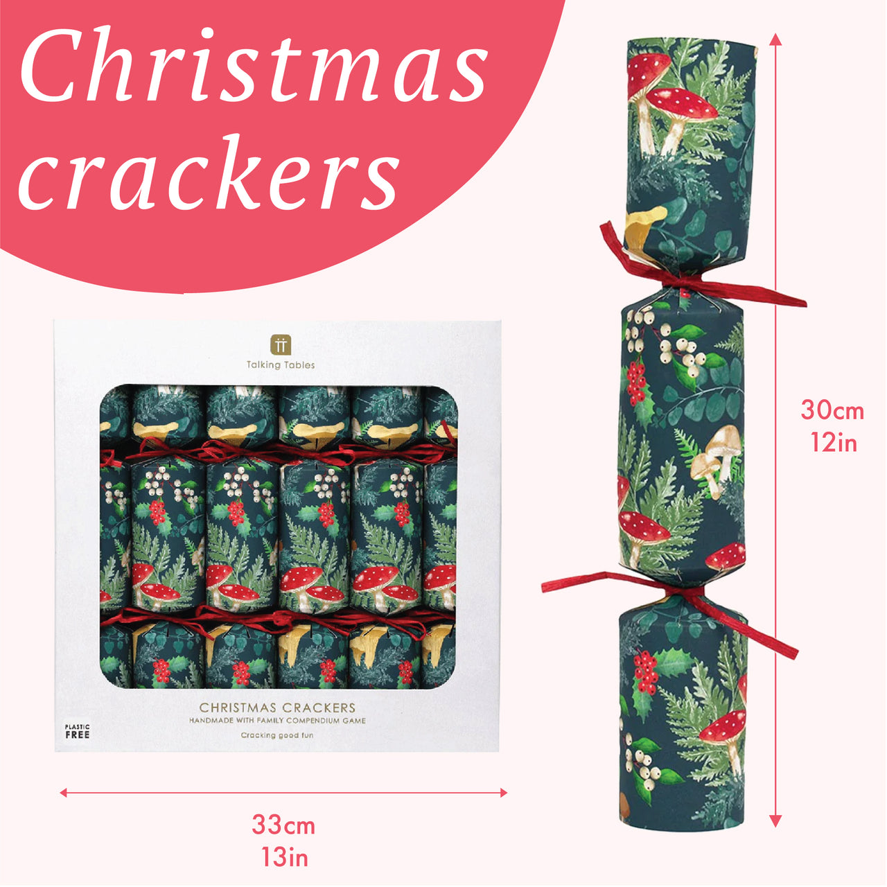 Why we love this Woodland Forest Green Christmas Crackers - 6 Pack: